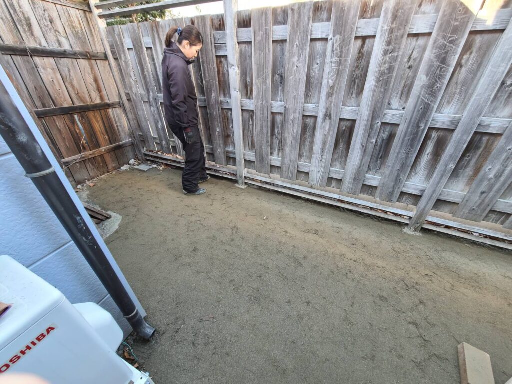 砂をひいてならして転圧。これが地味に大変でした。この辺りから雪の心配が出てきたため、急ピッチで進めます。