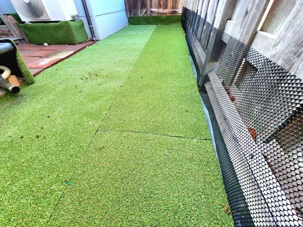頭を入れたり危なそうな所は余った人工芝や、保護ネットでガードをして、お庭の整備が完了しました!